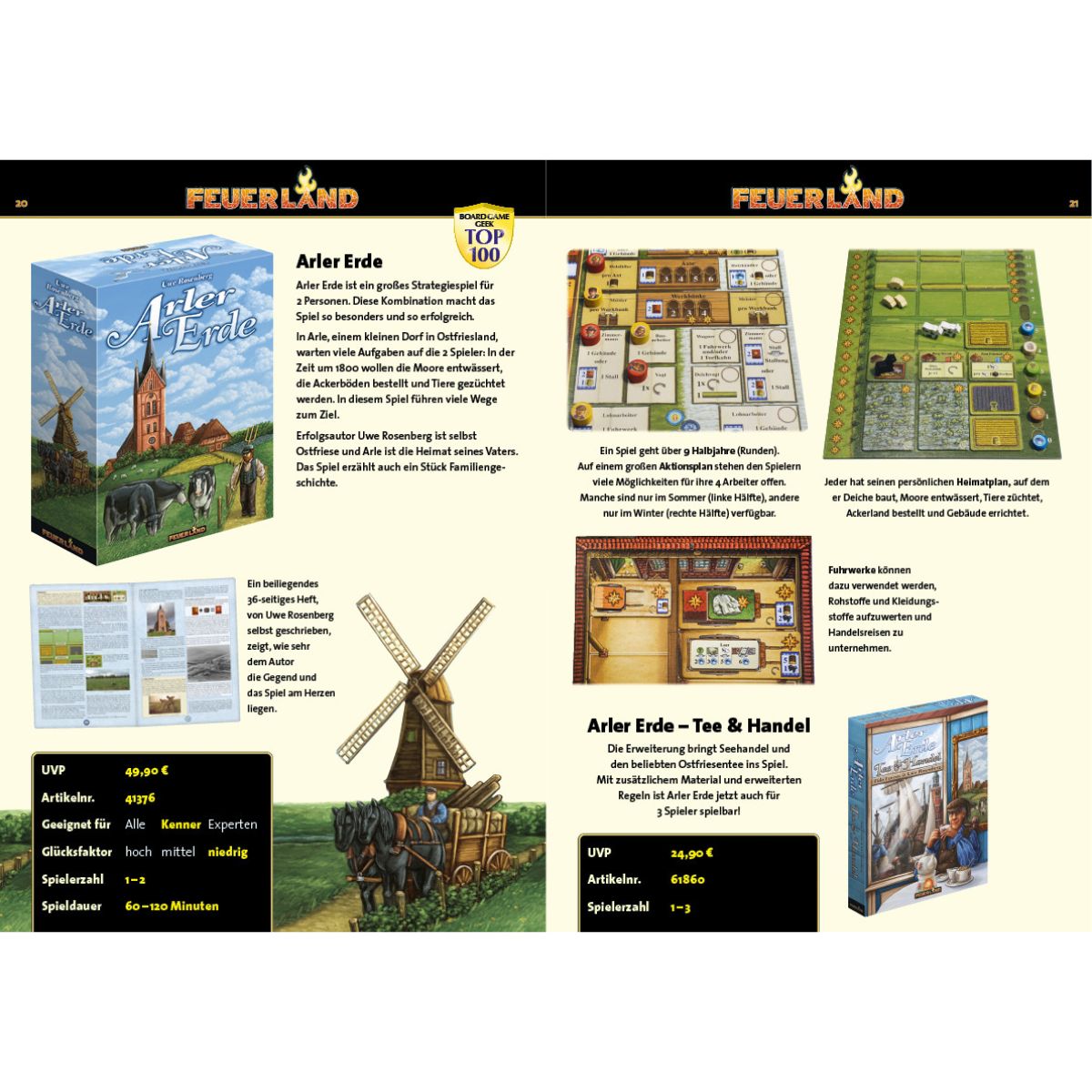 Arler Erde ist ein großes Strategiespiel für 2 Personen. Diese Kombination macht das Spiel so besonders und so erfolgreich. In Arle, einem kleinen Dorf in Ostfriesland, warten viele Aufgaben auf die 2 Spieler: In der Zeit um 1800 wollen die Moore entwässert, die Ackerböden bestellt und Tiere gezüchtet werden. In diesem Spiel führen viele Wege zum Ziel. Arler Erde ist ein großes Strategiespiel für 2 Personen. Diese Kombination macht das Spiel so besonders und so erfolgreich. In Arle, einem kleinen Dorf in Ostfriesland, warten viele Aufgaben auf die 2 Spieler: In der Zeit um 1800 wollen die Moore entwässert, die Ackerböden bestellt und Tiere gezüchtet werden. In diesem Spiel führen viele Wege zum Ziel. Erfolgsautor Uwe Rosenberg ist selbst Ostfriese und Arle ist die Heimat seines Vaters. Das Spiel erzählt somit auch ein Stück Familiengeschichte.
