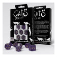 Dieses Cats Dice Set ist eine Hommage an Purrito, die außergewöhnliche Katze mit violettem Fell und goldenen Augen, die jederzeit dein Leben und deinen Arbeitsplatz erobern kann. Das Set enthält 7 Würfel (D4, D6, D8, D10, D12, D20 und D00), die in schimmerndem Violett mit goldenen Akzenten gestaltet sind. Auf jeder Seite findest du Katzen in verspielten Posen, Pfotenabdrücke, eine Futterschüssel und ein Wollknäuel.