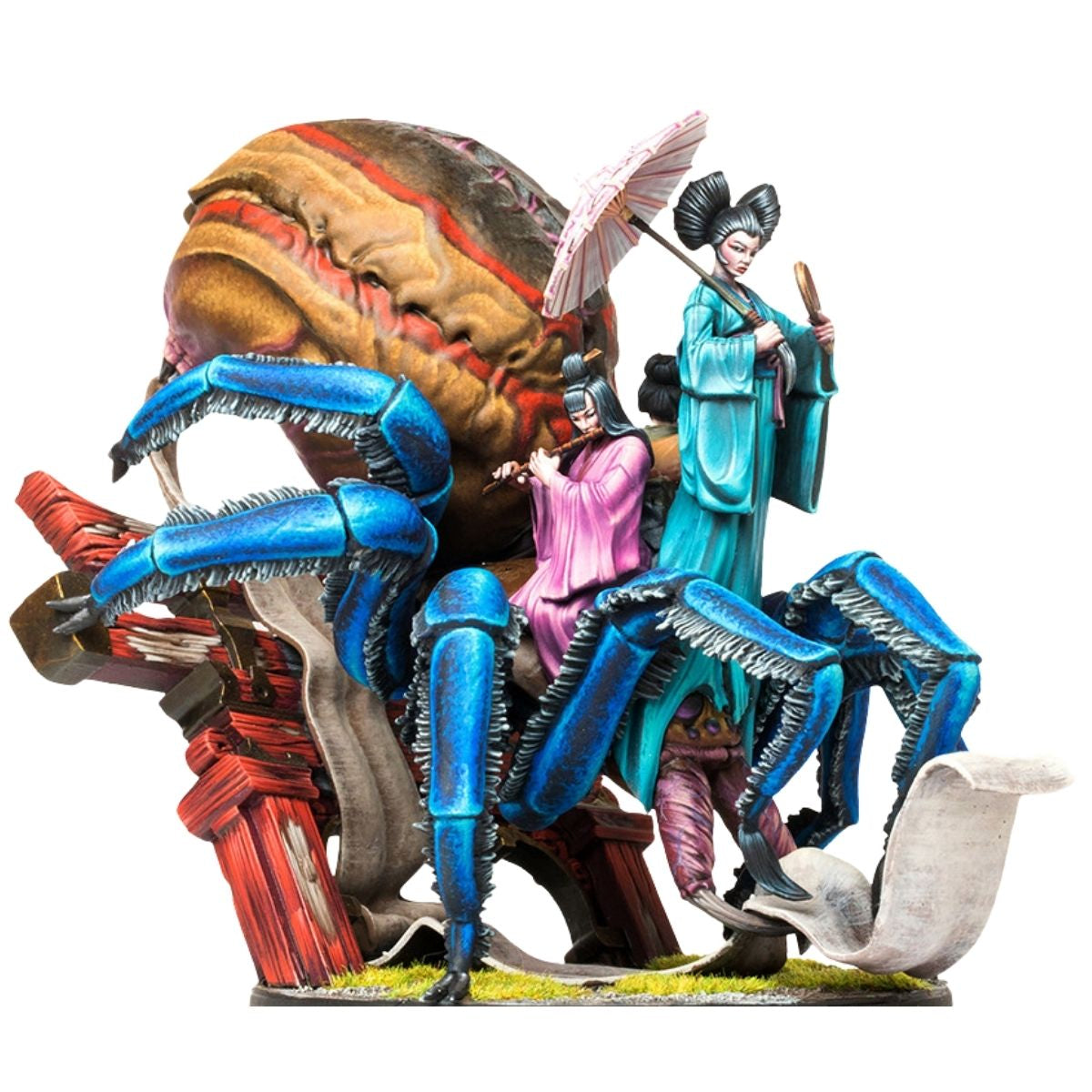 Jorogumo sind selbst unter den Yoroni geheimnisvolle Wesen. Einige behaupten, sie seien mit den Kitsune verwandt und verweisen auf ihre Raffinesse und Schönheit sowie ihre Macht über Träume und Gesang. Andere glauben, dass sie Yoroni sind, die mit Erde und Wasser im Einklang stehen; eine Verbindung, die das Para-Element Gift hervorbringt und ihre erhabene Natur erklärt. Wieder andere glauben, dass sie zu den Erleuchtetsten der Yoroni gehören, fähig, die Realität als das zu erkennen, was sie wirklich ist: ein Netz aus Träumen und Illusionen, gewebt vom Gleichgewicht, um die Zerstörung im Schlaf zu halten, die sich mit den Geistern verbündet hat, die das Weben selbst ausführen. Wie dem auch sei, niemand kann ihre Macht leugnen, sei es die bezaubernde Darbietung der Geisha oder die realitätsverändernde Zauberei der Mahotsu. Vor allem in Kombination mit der furchterregenden Kraft ihres Reittiers (oder ist es ihr Körper?). So oder so, diese Kreaturen sind ein Traum, mit denen man kämpfen kann, und ein Albtraum, denen man auf dem Schlachtfeld gegenübersteht.