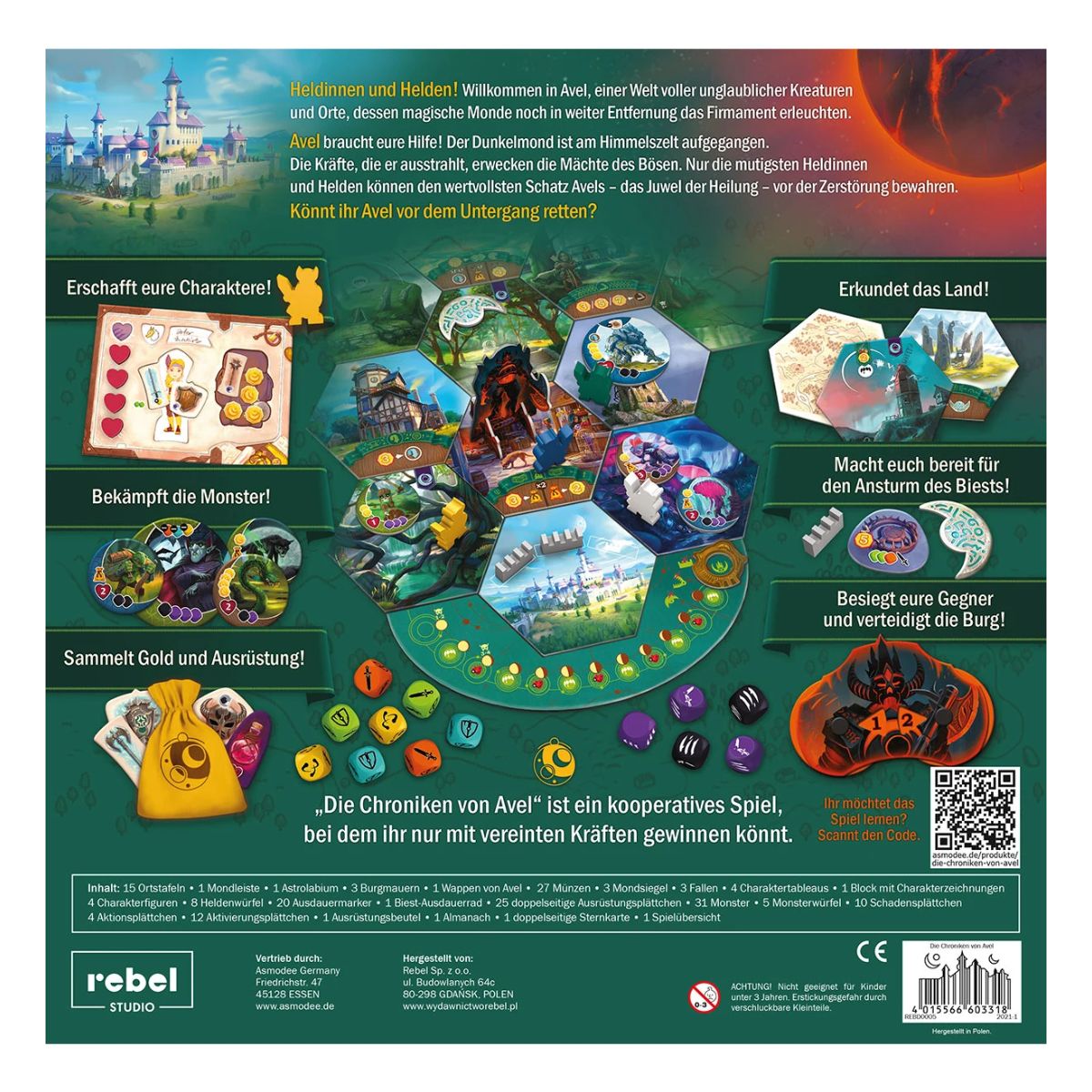 Die Chroniken von Avel ist ein kooperatives Abenteuer-Brettspiel, in dem ihr als mutige Helden gemeinsam das Juwel der Heilung beschützt und gegen fantastische Monster kämpft. Ihr erkundet das Land, sammelt Ausrüstung und bereitet euch auf den finalen Kampf vor, um Avel vor der drohenden Gefahr zu retten.