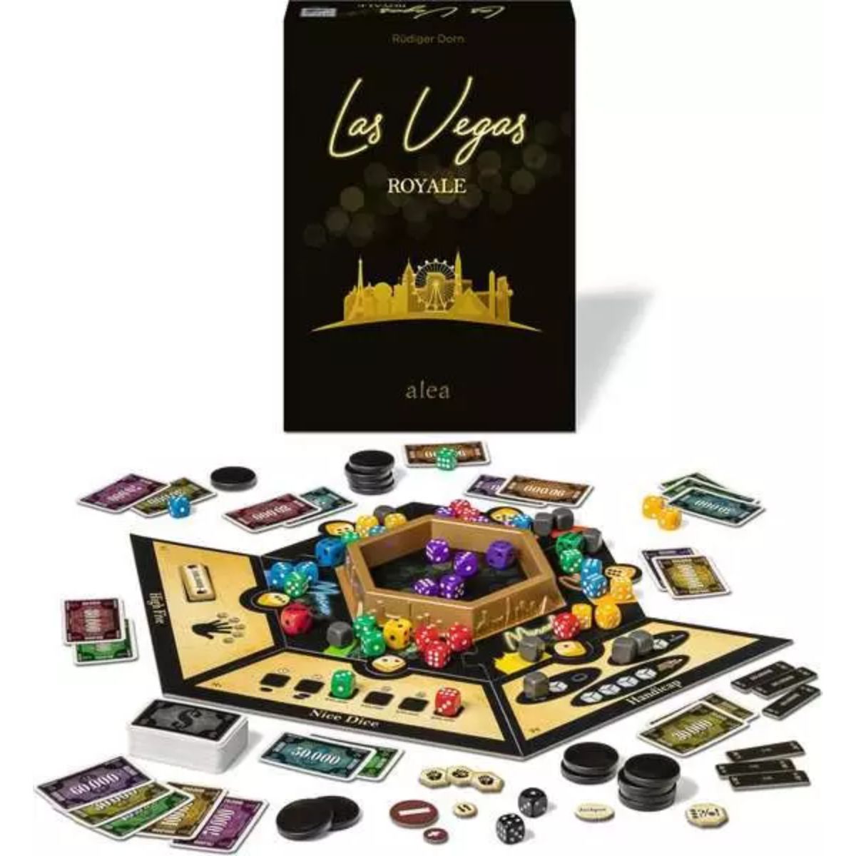 Las Vegas ist ein schadenfrohes Würfelspiel, mit einfachen Regeln und zwei unterschiedlich anspruchsvollen Spielformen. Die Brettspiel-Untermarke alea von Ravensburger ist vor allem bei Strategen beliebt. Sie zeichnen sich durch einen besonders starken Wiederspielreiz und kompakter Spielmechanik aus. Zudem wurden bereits mehrere alea Spiele mit nationalen wie internationalen Preisen ausgezeichnet.