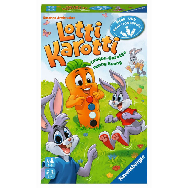 Das Ravensburger Spiel Lotti Karotti für 2-4 Spieler bietet zwei neue Abenteuer: Ob man sich die Farben unter den Hasenfüßen am besten merkt oder am schnellsten reagiert – Spielspaß ist auf jeden Fall garantiert. Das Merk- und Reaktionsspiel ist eine tolle Beschäftigung für die ganze Familie und alle Kinder ab 4 Jahren.
