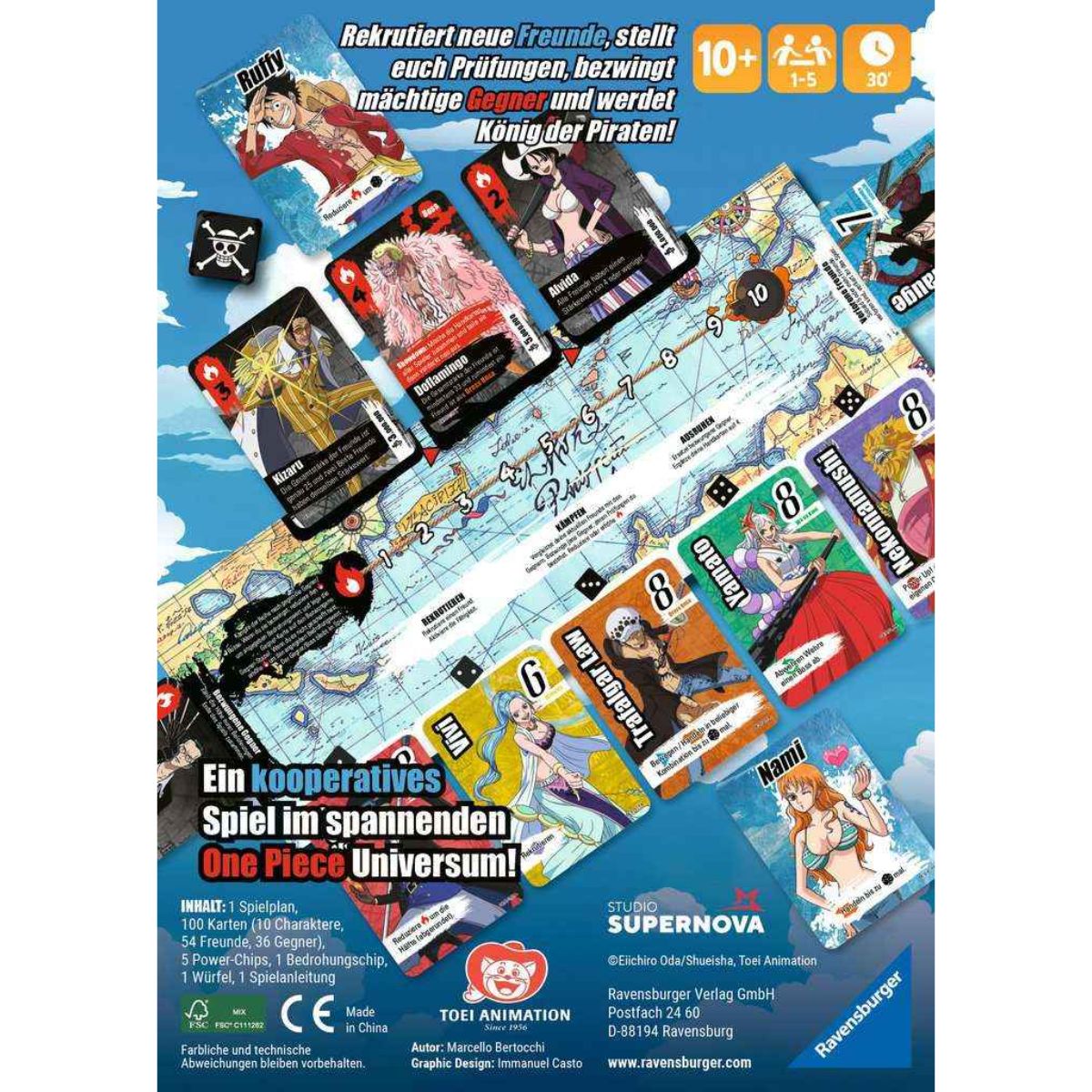 Versammelt eure Freunde und setzt die Segel für ein neues One Piece Abenteuer! In diesem kooperativen Brettspiel rekrutieren 1-5 Spieler gemeinsam neue Freunde, erledigen Missionen und besiegen mächtige Gegner, um Piratenkönige zu werden.Je mehr Gegner besiegt werden, desto mehr Belohnungen erhält man. Belohnungen bestimmen, welche Art von Piraten die Spieler werden. Aber Vorsicht! Unbesiegte Gegner stellen eine Bedrohung dar! Werden zu viele Freunde verloren, ist euere Abenteuer gescheitert!