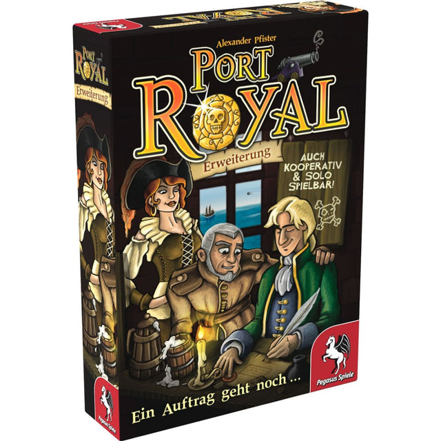 Im vielfach ausgezeichneten Kartenspiel Port Royal gilt es mit Risikobereitschaft und einer Hand für die richtige Crew die Expeditionsaufrufe des Königs zu erfüllen. In der Erweiterung heißt es nun: Ein Auftrag geht noch ... Denn hier kann man sich mit seiner Crew, der sich auch neue Verbündete anschließen, neuen Aufgaben stellen und das nun auch kooperativ oder als kühne*r Einzelgänger*in.Die Erweiterung Ein Auftrag geht noch ... bietet den Spielenden nicht nur Aufträge und neue Verbündete. Sie macht Port Royal auch kooperativ und solo spielbar.