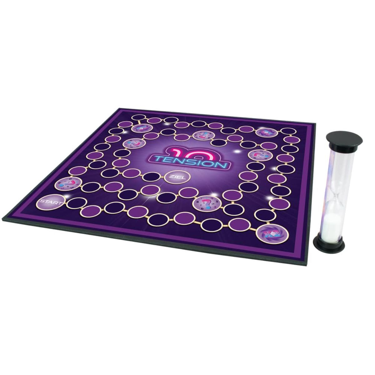 Tension ist das ultimative Ratespiel für die ganze Familie! In einem rasanten Wettlauf gegen die Zeit spielt ihr in zwei Teams um den Sieg, indem ihr versucht, möglichst viele Antworten zu den vorgegebenen Themen zu finden. Ob Eiscreme-Sorten, Superhelden oder Ed Sheeran Songs - der Ratespaß ist dank origineller Kategorien garantiert! Aber es gibt einen Haken - denn es zählen nur Antworten, die genau mit der Liste auf der Themenkarte übereinstimmen! Also gilt es, so viele Antworten wie möglich in die Runde zu werfen, während die Sanduhr immer weiter läuft. Welches Team schafft es mit den erspielten Punkten der richtigen Antworten zuerst ins Ziel?