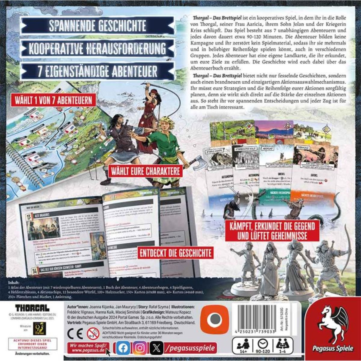 Thorgal – Das Brettspiel ist ein kooperatives Abenteuerspiel mit fesselnder Geschichte, das auf der bekannten gleichnamigen Fantasy-Comic-Reihe basiert. Die Spielenden schlüpfen in die Rollen von Thorgal, Aaricia, Jolan oder Kriss und erkunden in sieben unabhängigen Abenteuern verschiedene Gebiete. Das Buch der Abenteuer führt die Spielenden zu verschiedenen Orten, an denen sie auf Ressourcen, Feinde, sowie auf unerwartete Begegnungen stoßen und sich in spannenden Kampfsituationen wiederfinden. Im Zentrum des Spiels steht neben dem Erzählaspekt ein innovativer Aktionsmechanismus, welcher der Gruppe gute Zusammenarbeit, strategische Entscheidungen und sorgfältige Planung abverlangt. Jede Aktion beeinflusst dabei auch den Verlauf der Geschichte. Mit einer Mischung aus immersiven Spielerlebnis und Eurogame-Elementen bietet Thorgal – Das Brettspiel eine einzigartige Spielerfahrung. Jedes Szenario entführt die Spielenden in eine eigene Welt voller Herausforderungen, Verbündeter und Nebenhandlungen. Jedes Abenteuer kann beliebig oft und in beliebiger Reihenfolge gespielt werden. Dabei wird kein Spielmaterial zerstört, sodass die Abenteuer immer wieder neu erlebt werden können.